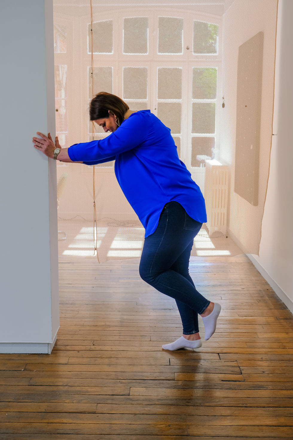 Les cinq joueur·ses de parquet réveillent le sol en le faisant chanter. Les grincements, signes d’usures et de détériorations, sont transformés en différentes notes de musique, jouées par les mouvements corporels des performeur·ses. Tels des percussionnistes, iels sont comme des musiciens où l’instrument joué est le sol qu’ils ont en commun. L’oreille collée contre le sol, iels sont en position d’écoute. Debout, les pieds ancrés et animés, iels se parlent, s’expriment les un·es avec les autres. L’espace intérieur de l’architecture en est la caisse de résonance de ce nouvel instrument. Tout comme les 10 sculptures Lettres sans retour qui sont dissimulées dans le parquet, les performeurs·ses entrent en conversation à travers le sol de l’espace. À la limite de la sculpture, cette performance s’inspire du mouvement minimaliste américain des années 60-70 et notamment à l’œuvre de Carl Andre ou encore de Robert Morris, The sound of the bow of its own making (1961).